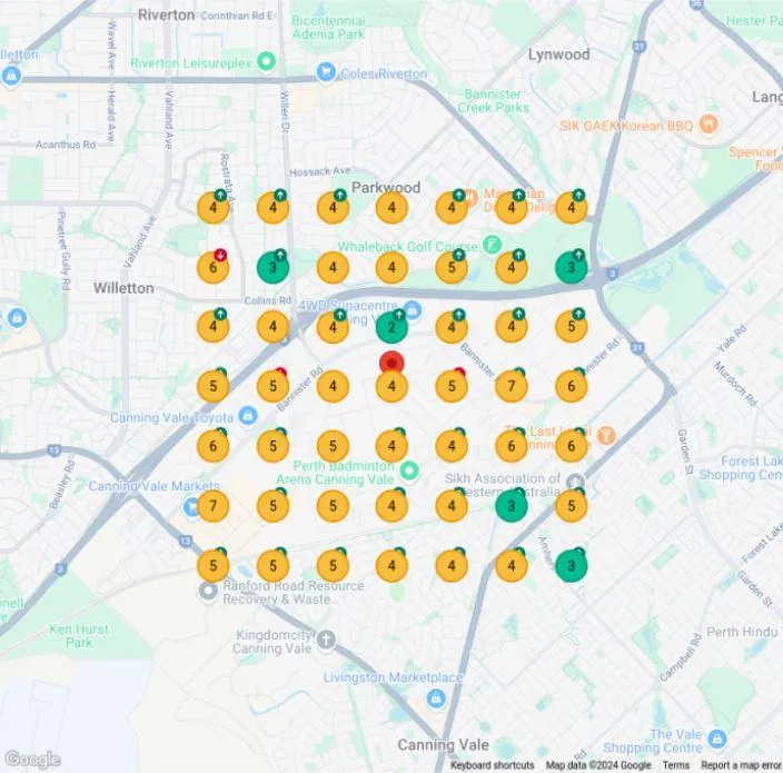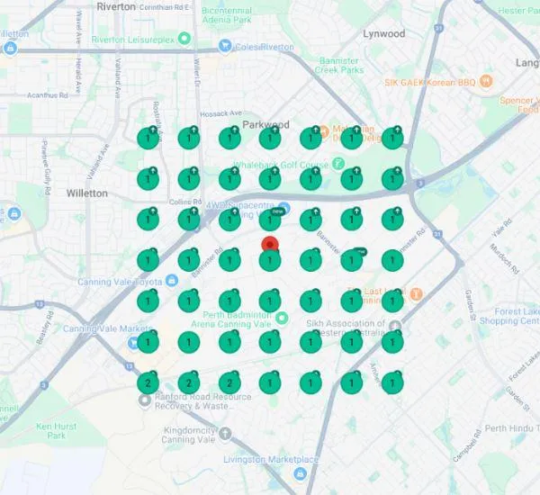 Take a look at the heatmap from Map Tracker showing the dramatic improvement in visibility on the map. This is the kind of impact we can make for your business.